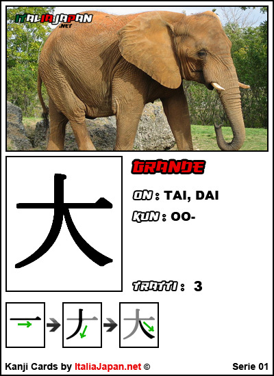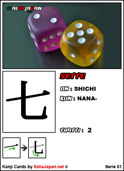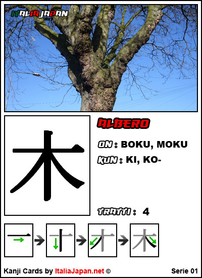 Su ogni Kanji Card trovi il significato del kanji, le letture on e kun, il corretto metodo di scrittura ed i vocaboli giapponesi con la traduzione in italiano. Clicca sulle immagini per ingrandirle e visualizzare vocaboli e frasi d’esempio. Buono studio!